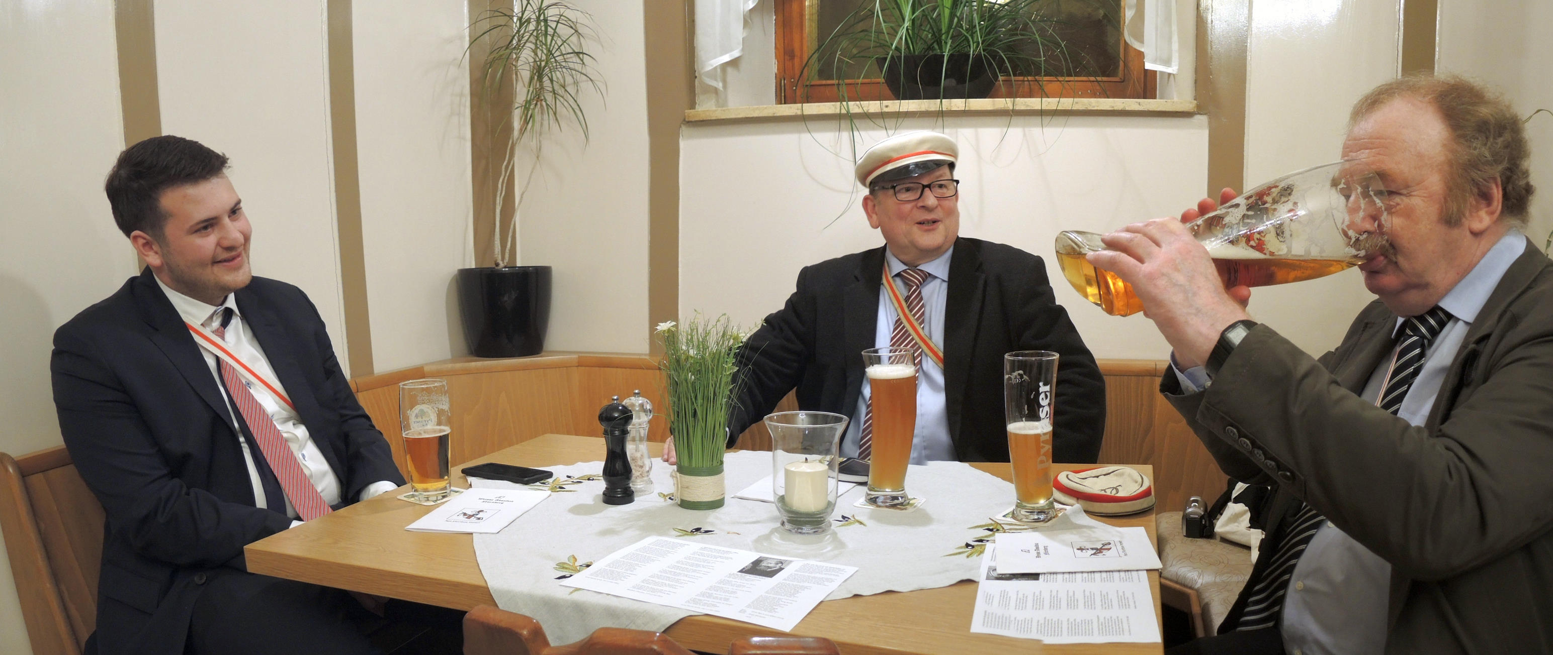 Semesterantrittskneipe 31.03.2017 ![]() Am 31.03.2017 wurde vom neuen Präsid das Sommersemester 2017 eröffnet. (alle Bilder können durch einfachen Klick vergrößert werden) ![]() Eine stattliche Anzahl Alter Herren hatte sich eingefunden. Schließlich war diese Kneipe dem Andenken von Walther Wolfgang "Wawo"Hammerbacher gewidmet, der vor 25 Jahren verstorben war. ![]() "Frater tua cara est?" Wir gratulieren dem Alten Herren zum Enkelchen. ![]() Insgesamt wurden an diesem Abend 2 Lieseln getrunken. Weitere Filme über die Weiße Absolvia Nürnberg |